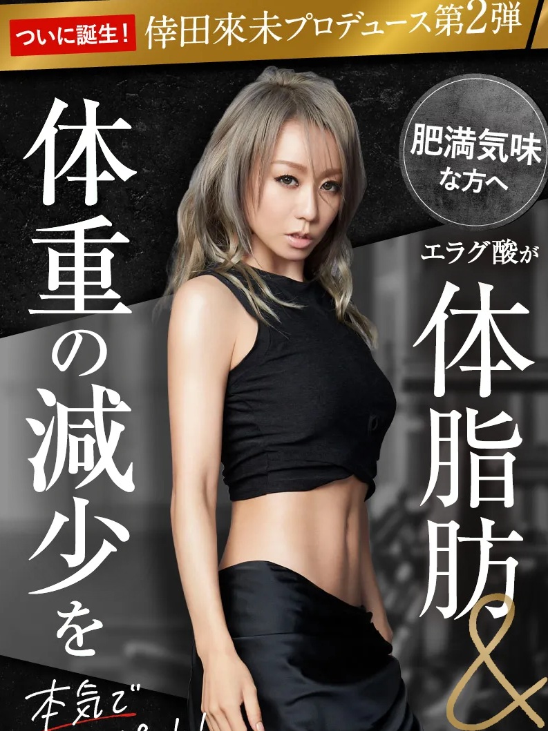 話題性の高さで注目を集めているダイエットサプリです。倖田來未さんプロデュースのシリーズ第2弾で、エラグ酸を配合した機能性表示食品として販売されています。ソフトカプセルタイプで飲みやすく、脂肪や体重が気になる方に向けて作られた商品です。
